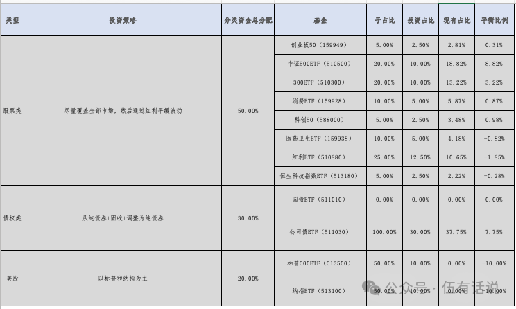 投资组合对比之前做了调整,从场外基金全部换为了场内基金,同时去掉主动基金,全部替代为了对应的被动基金,能看见美股和国债为0的占比,这是因为美股目前观望关税的情况,目前中国是硬扛,但是其他国家都选择了谈判,所以后续如何影响也不太清楚。