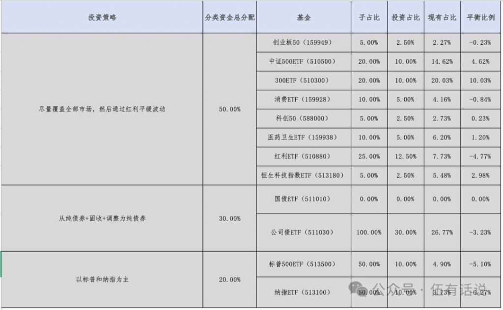 投资组合情况,在4-5月期间,我觉得部分ETF觉得价格不高的情况下,我择机买入了一部分,比如医药卫生、科创和恒指,其他的ETF暂时没有动,比如消费,因为国内大力刺激内需消费,所以消费在整个关税大战期间有影响,但是下降不多,我个人觉得不是太好的买入机会,所以准备再等等。