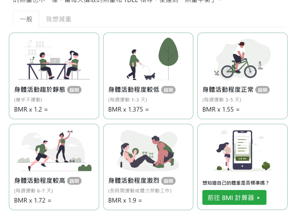 首先是关于热量,热量计算有两个数值和我们减肥息息相关,第一个为BMR(基础代谢率),也就是你在完全静止的情况下,维持你生命活动所需的最低能量。第二个为TDEE(每日总消耗能量),TDEE就是在BMR基础上增加日常活动消耗的能量(走路、运动、工作以及家务等产生的能力消耗)。